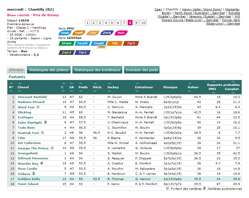Comme vous le savez certainement, la plupart des courses de Plat et d'Obstacles dans le Monde et en France sont des Handicaps.