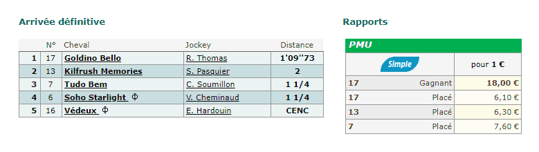 C'est avec ce Simple Critère essentiel que le N°17 Gagne facilement cette petite Course de Plat :